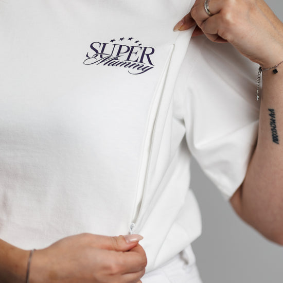 Motif "SUPERMummy" stylisĂ© au dos : ton emblĂšme, ta fiertĂ©, ton Ă©nergie du quotidien âĄ